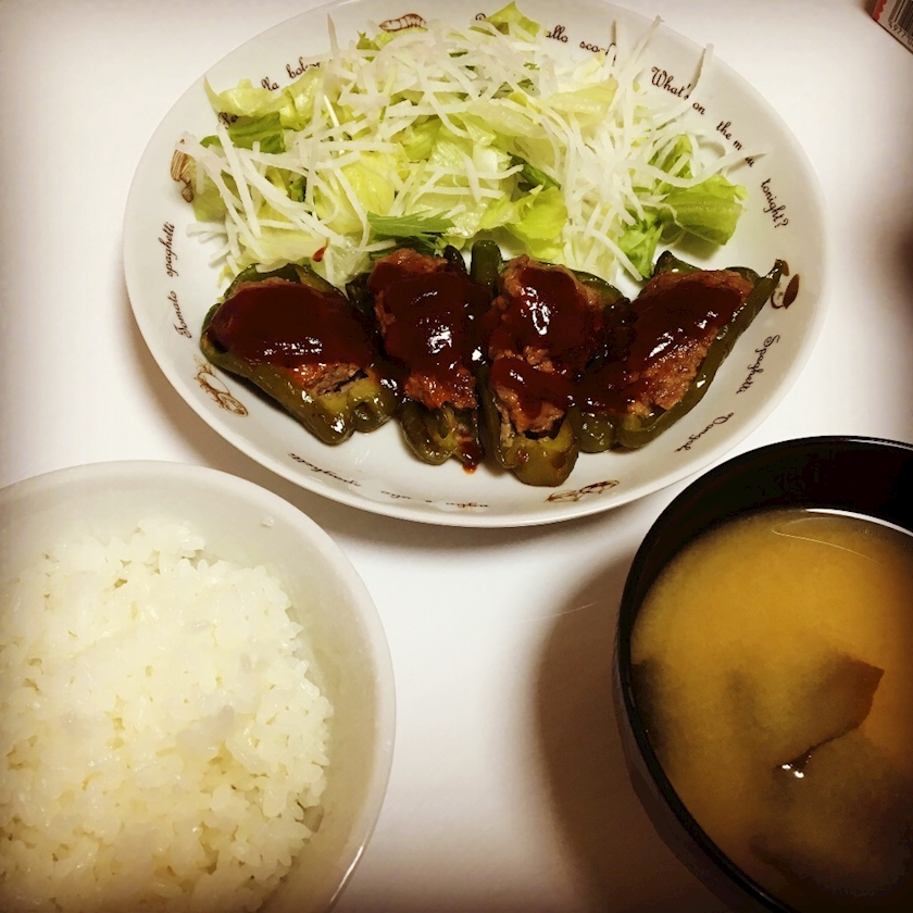 ピーマンの肉詰め作ったーー!