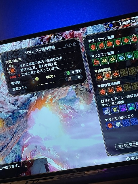 全部部位破壊して、捕獲して、落とし物も一個だけで