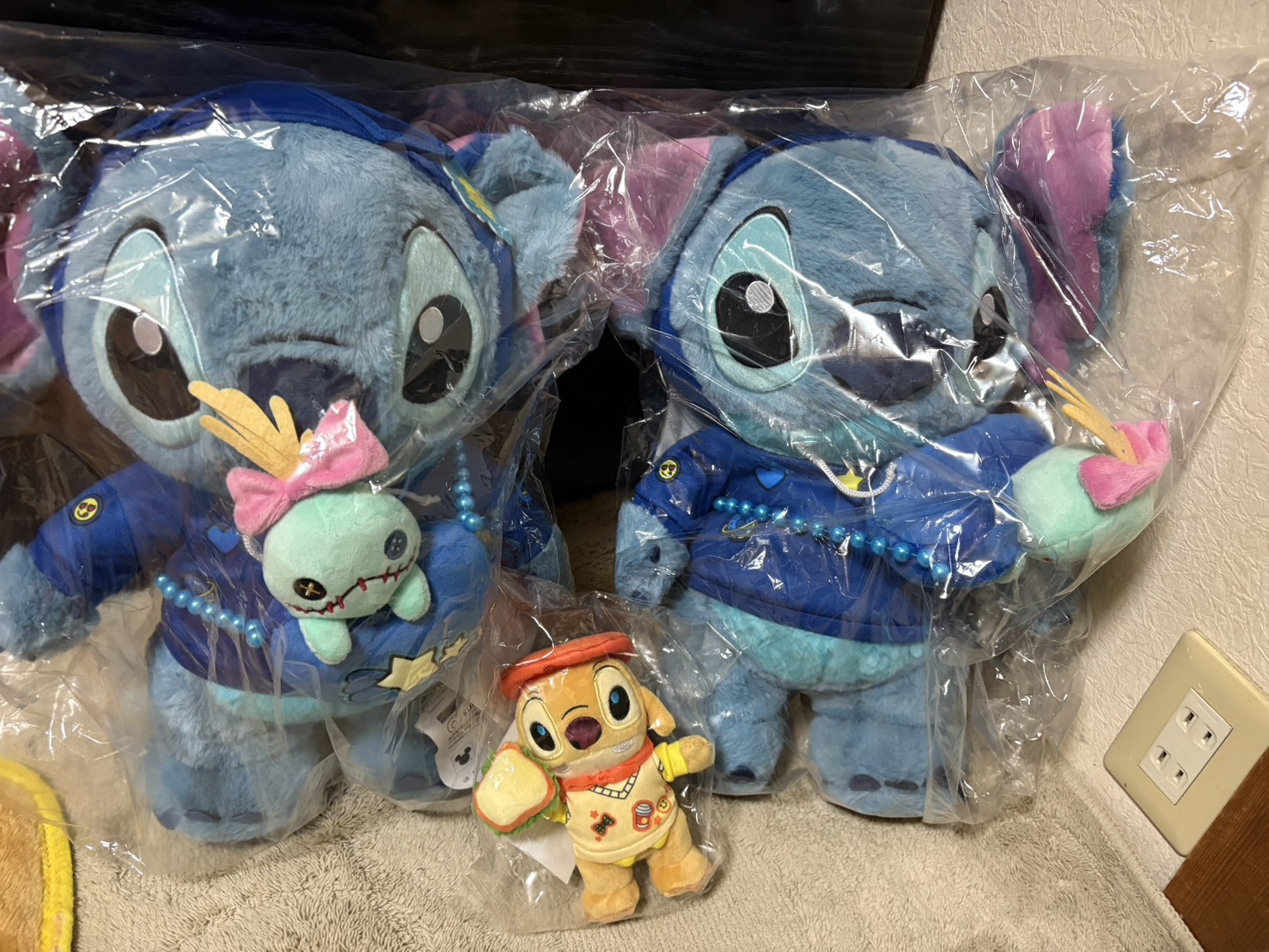スティッチ大好きだから3回引いたらめちゃくちゃ神引き大きいスティッチ2体と小さなお友達連れて帰った(๑♡∀♡๑)