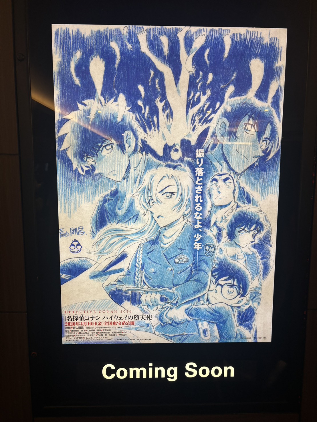 今日は映画館行ってきたんだけど、毎年恒例で見てるコナンの来年の映画「ハイウェイの堕天使」がデジタルポスターになってた!👓🎀